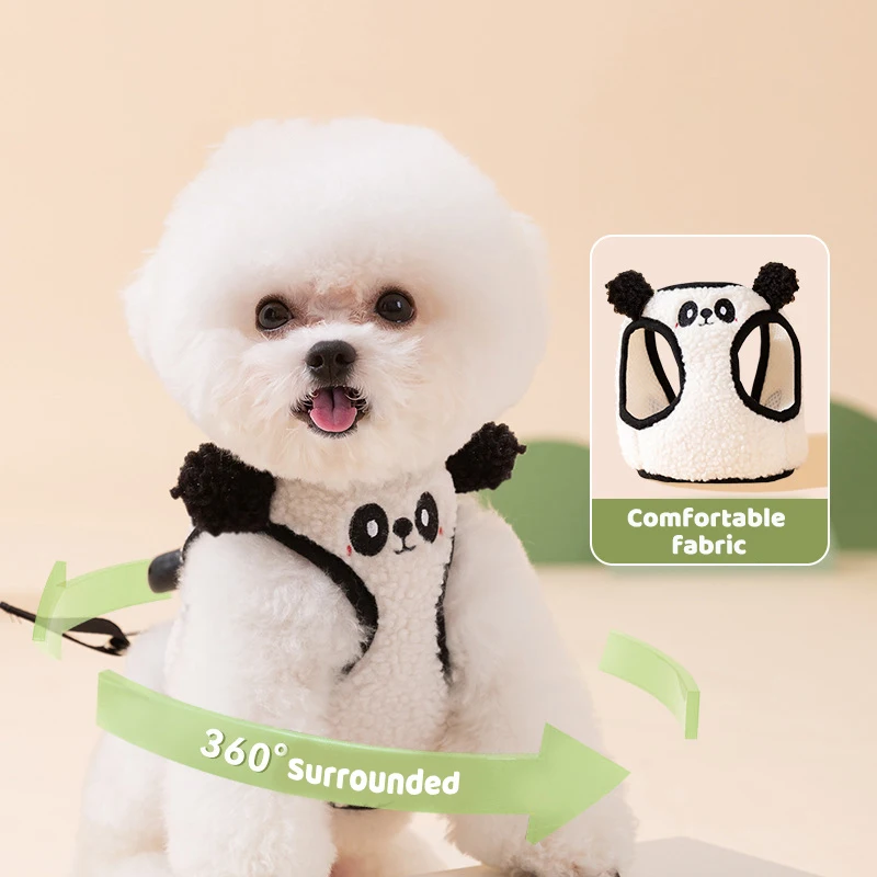 Cute Animal Dog Harness Pet Fleece Dog Vest Autumn Winter Dog Warm Clothes Puppy Harness and Leash Set Chihuahua Bichon Costume