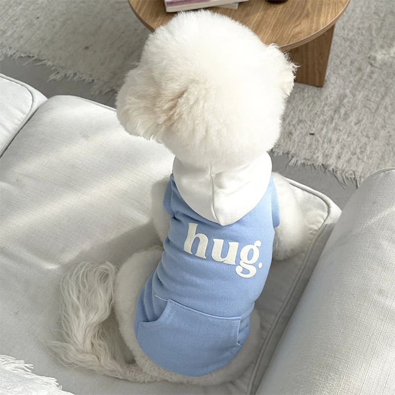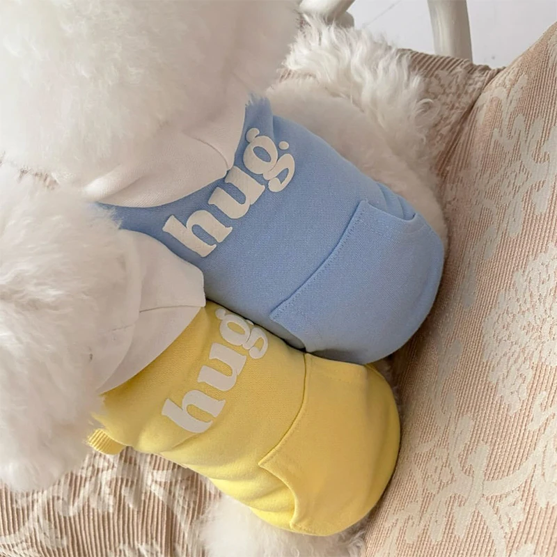 Dog Hoodies for Small Dogs Letter Pocket Fashion Dog Clothes Autumn Winter Warm Coat Chihuahua Bichon Dog Costume Pet Pullover