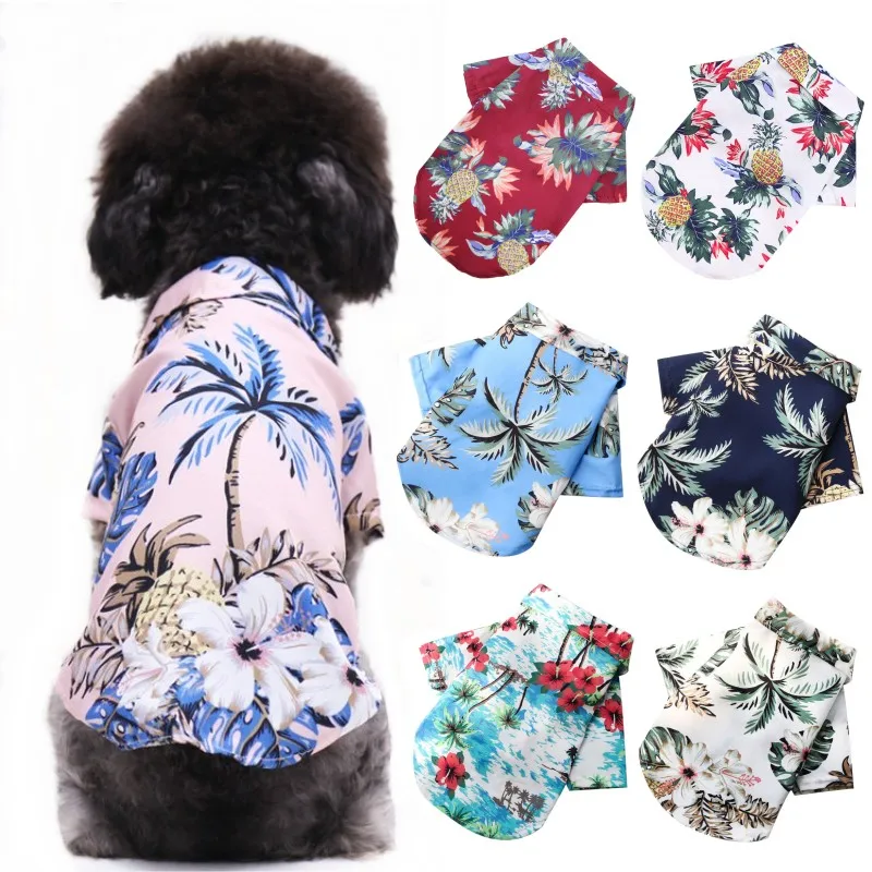 Dog Shirt Summer Fashion Pet Dog Dog Hawaiian Outfit Chihuahua French Bulldog Bichon Dog T-Shirt Soft Cat Vest Puppy Costume