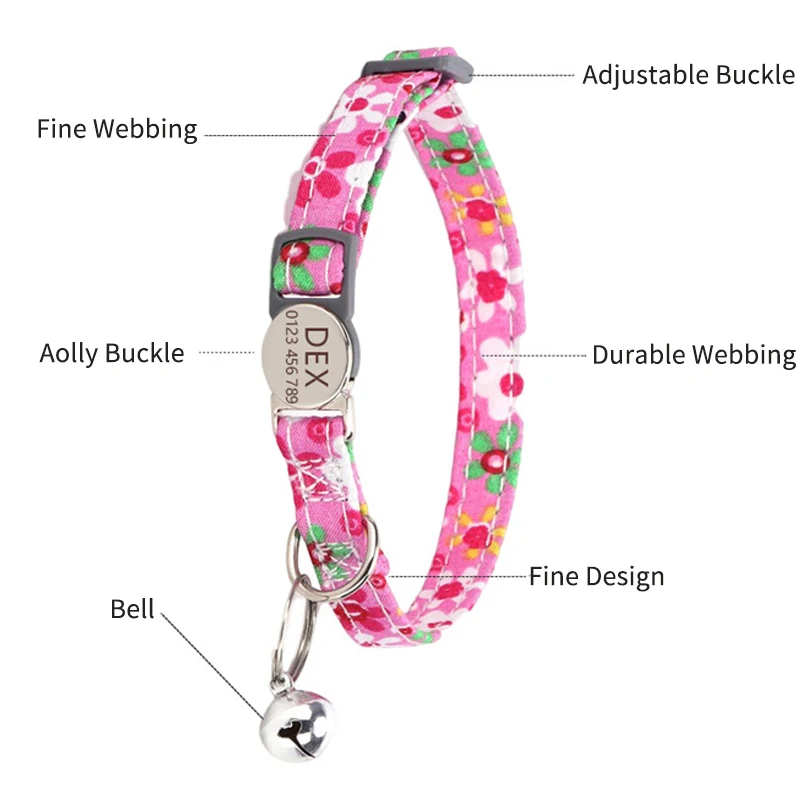 Personalized Dog Collar Nylon Adjustable Small Dog Collar Luxury Print Free Engraved Kitten Collars Pet Anti-Lost Cats Necklace
